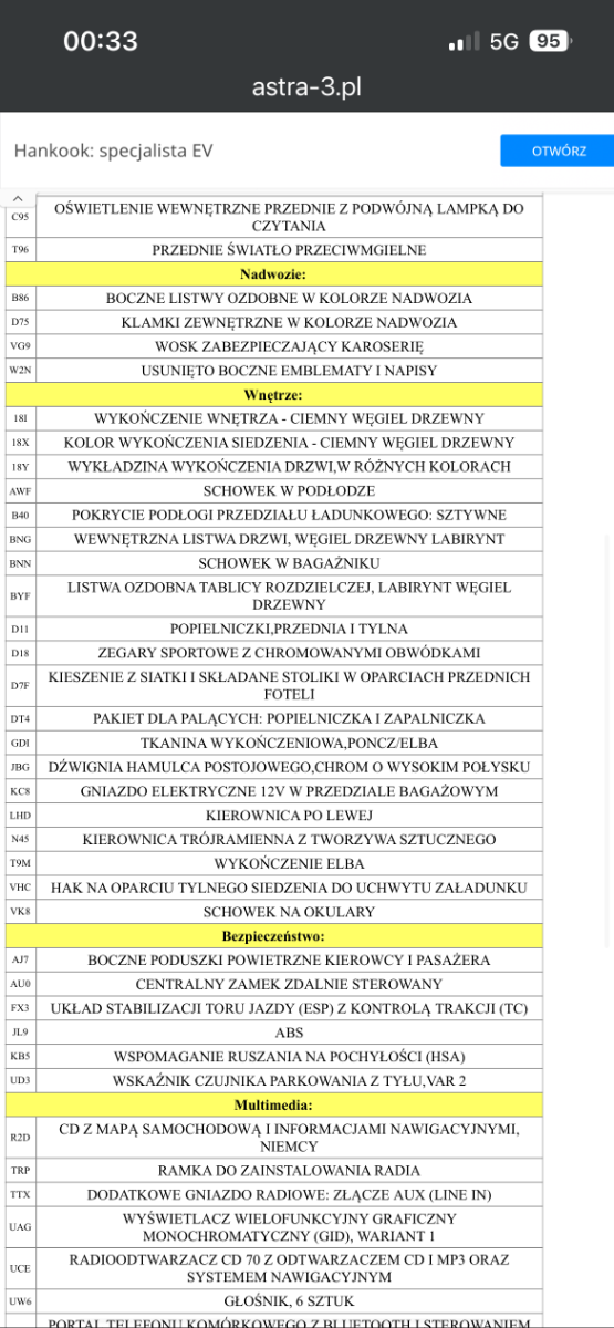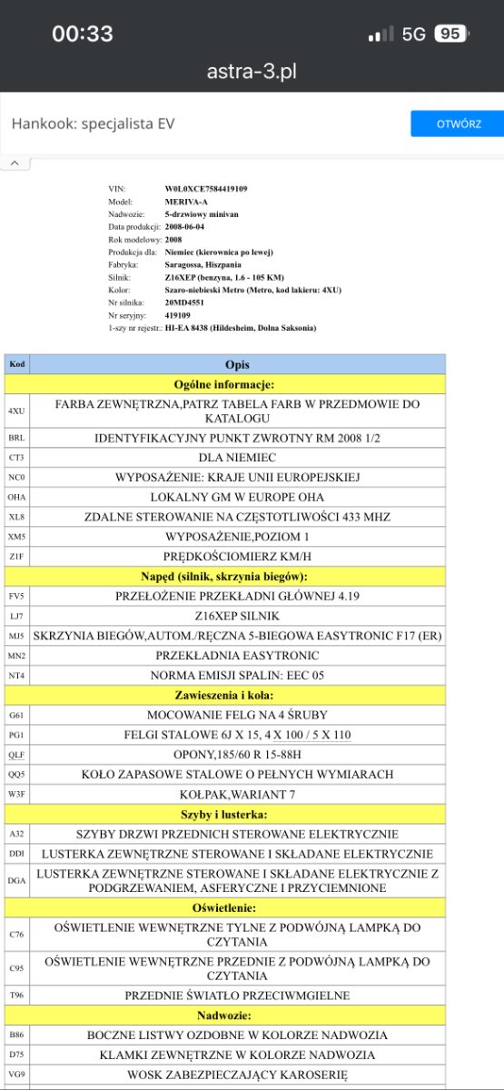 peplunio Opublikowano 10 Listopada Udostępnij Opublikowano 10 Listopada To nie to. Ja na tej stronie sprawdzałem swoją Merive A i wyskoczyła cała specyfikacja i wyposażenie fabryczne. Nie pomyliłeś się w przepisywaniu VIN?Bo faktycznie jak woisuje ten numer , to wyskakuje, że numer nieprawidłowy. A jak wpisuje swój , to wyskakuje całe wyposażenie i specyfikacja🤔 Zaskoczyła w końcu ta strona. Tu masz wykaz:   Cytuj Odnośnik do komentarza https://forum.opel24.com/topic/95065-dekoder-vin/page/2/#findComment-825929 Udostępnij na innych stronach Więcej opcji udostępniania...