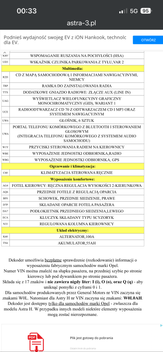 Łukasz.S. Opublikowano 10 Listopada Udostępnij Opublikowano 10 Listopada niestety na tej stronie pokazuje mi że VIN niepoprawny chyba dlatego że to jest ASTRA   Cytuj Odnośnik do komentarza https://forum.opel24.com/topic/95065-dekoder-vin/page/2/#findComment-825928 Udostępnij na innych stronach Więcej opcji udostępniania...
